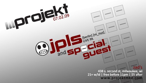 Projekt and Projekt Intl was a Milwaukee based dj and promoter collective featuring Dela, Fortune, Sir Fice, Screendoor and David Dominguez. Projekt was active from 2008 - 2012. Projekt curated club and warehouse events throughout the midwest, a podcast series and supported music pr agencies.